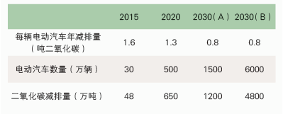 表1:电动汽车发展至2030 年的碳减排量估算