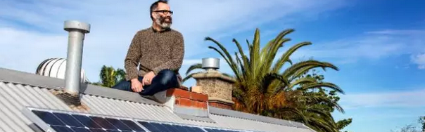图注:Andrew Longmire和他的屋顶太阳能发电板 图片来源:Mark Dadswell地点:维多利亚州德尔宾市(Darebin)