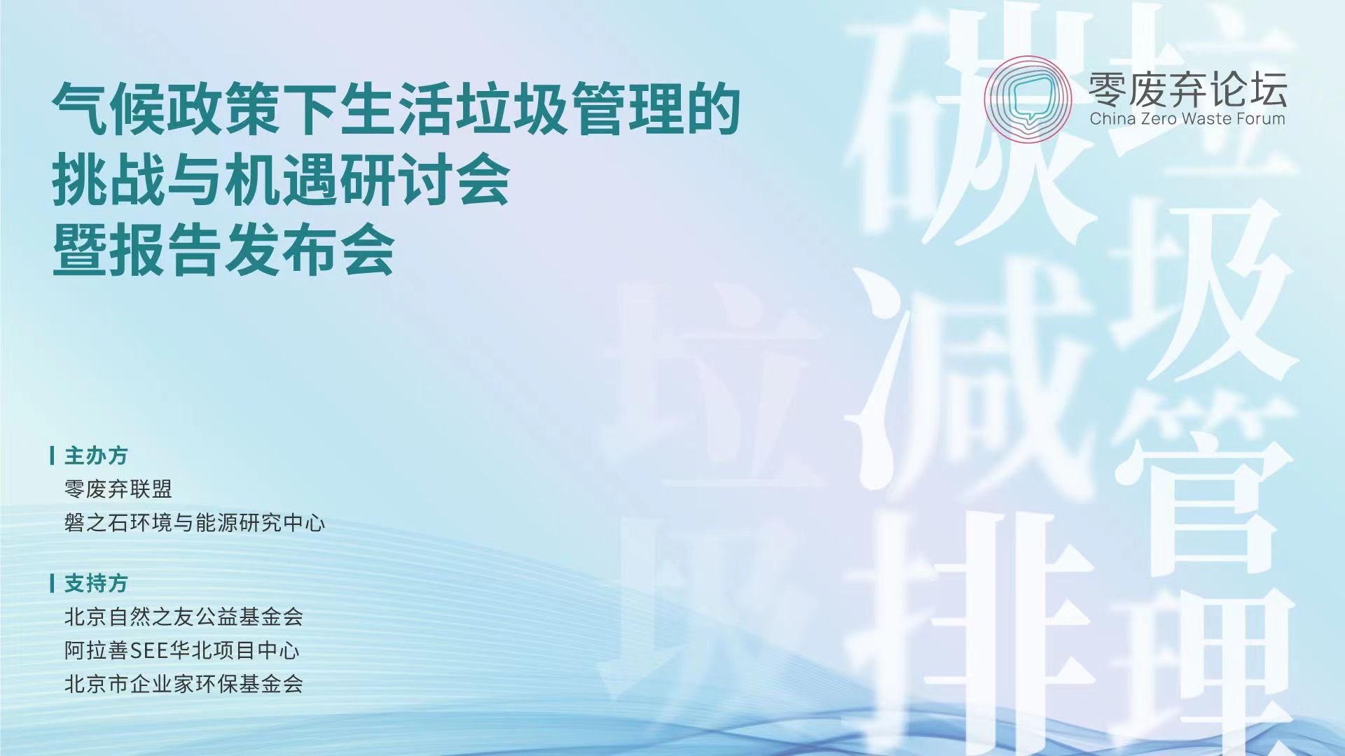 2022年06月16日下午,磐之石环境与能源研究中心与零萌公益共同举办气候政策下生活垃圾管理的挑战与机遇暨报告发布会。